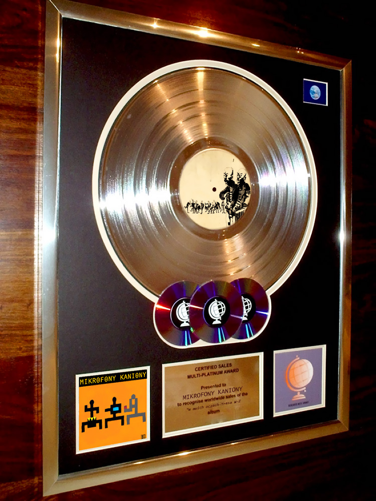 To, co najbardziej raduje przy wydawaniu płyt, to oczywiście bezpośredni oddźwięk tych, którzy te płyty nabywają. Mnie te płyty cieszą, w końcu to moje dzieci, ale jeśli dostaję takie listy, jak ten od Soni z Aten, to mnie najzwyczajniej w świecie zatyka. Zamieszczone poniżej zdjęcie uzupelnia następujacy fragment maila: "A co do Mikrofonow to .. Płyta Mikrofonow Kanionów platynowa!!!!!!!!!!!!!!!!!!!!!!!!!! (w moich oczach.....). " Dziękujemy bardzo....