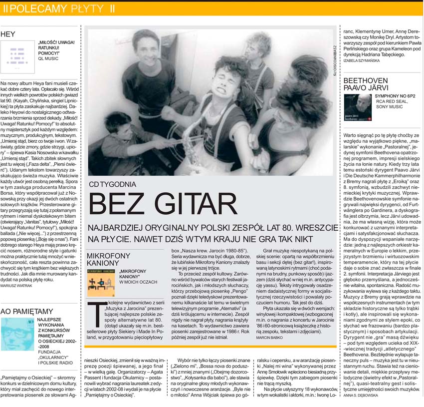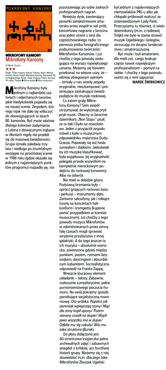 | MIKROFONY KANIONY płytą tygodnia w Gazecie Wyborczej | ||||||||||||||||||||||||||||||||||||||||||||||